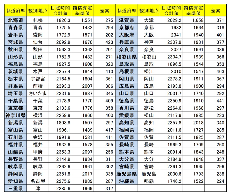 日照補償サービスにつきまして、観測時間の結果をお知らせいたします。